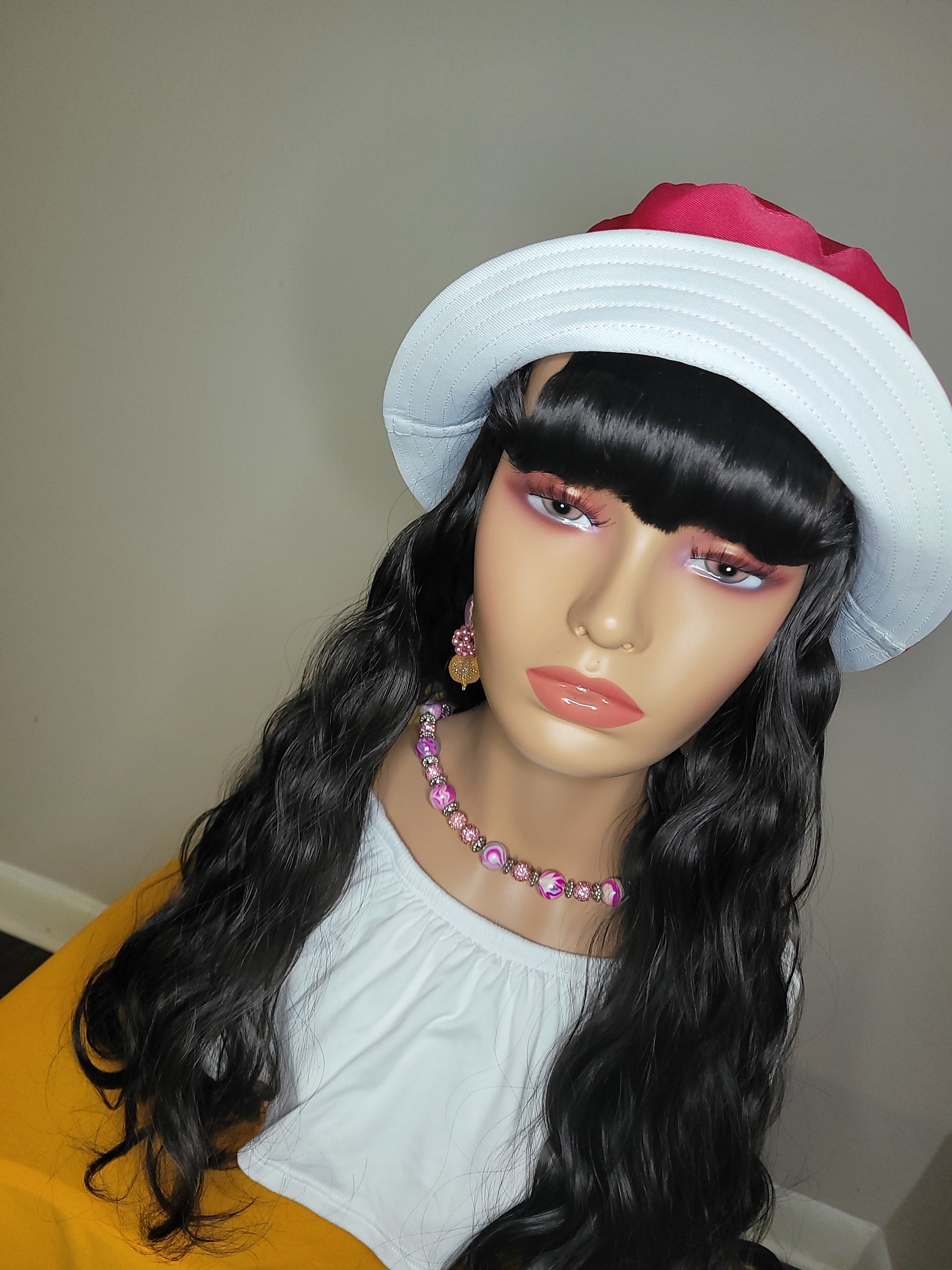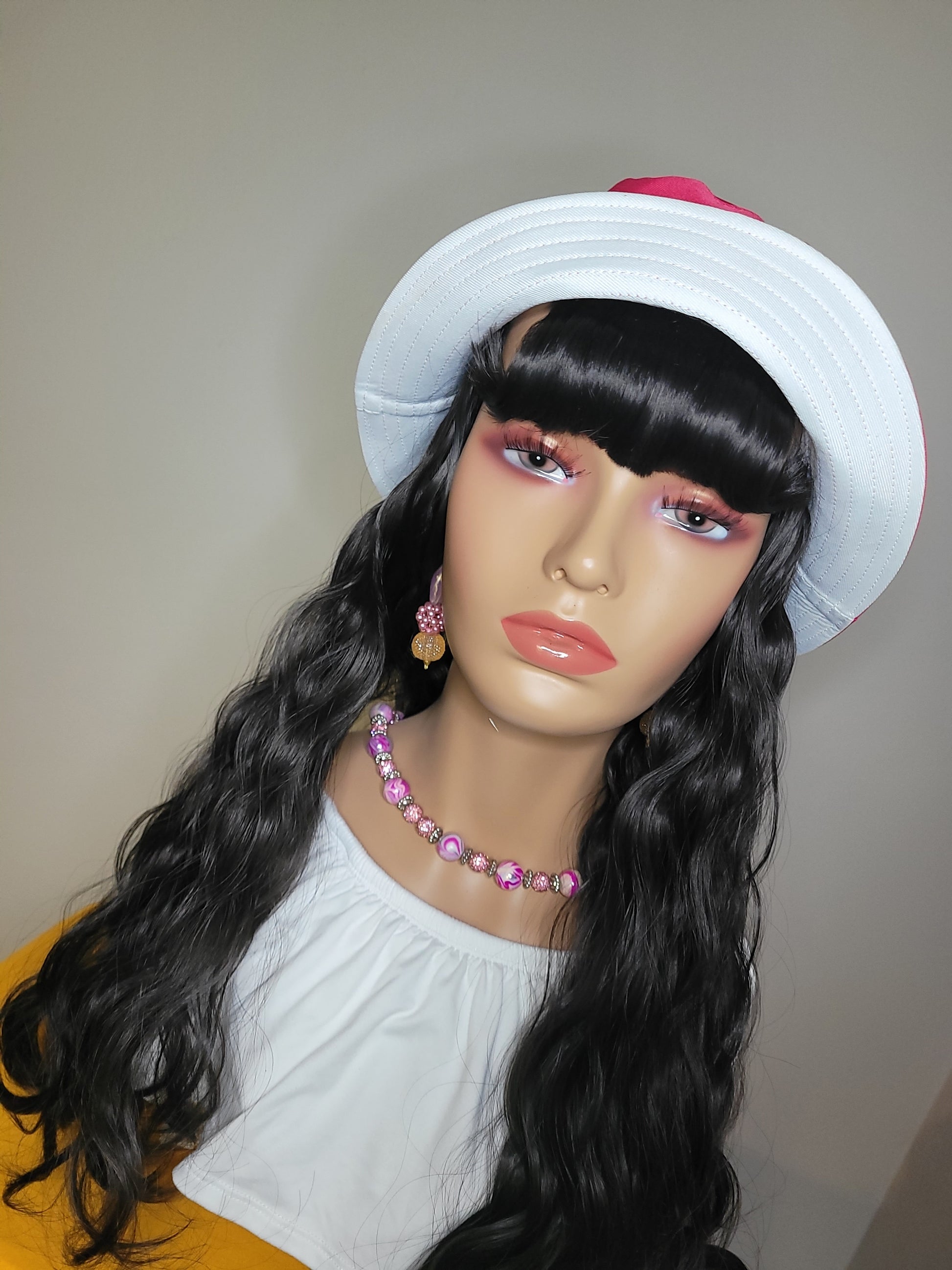 20in bundles with bang. Quick to wear. Made with Good Quality Human Hair. Can heat at lowest-medium Temp. Lightweight
